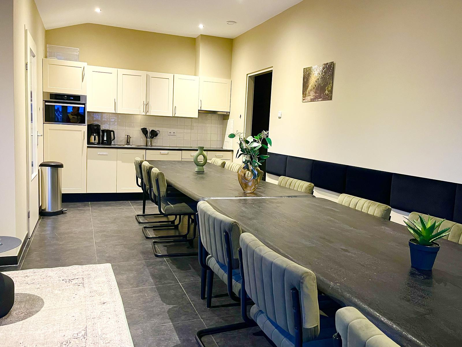 Ruime vrijstaande vakantiewoning voor 14 personen met 6 slaapkamers, privébadkamers, infraroodsauna, grote tuin, 3 parkeerplaatsen en gratis wifi.